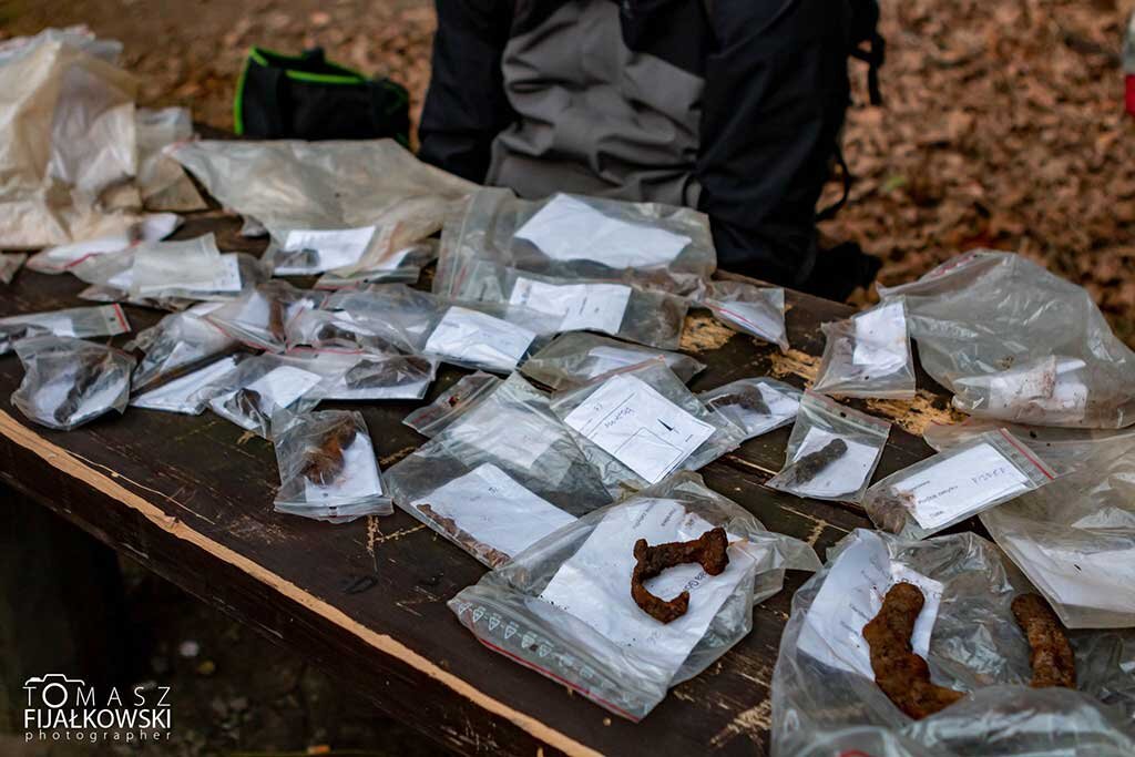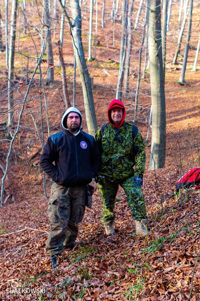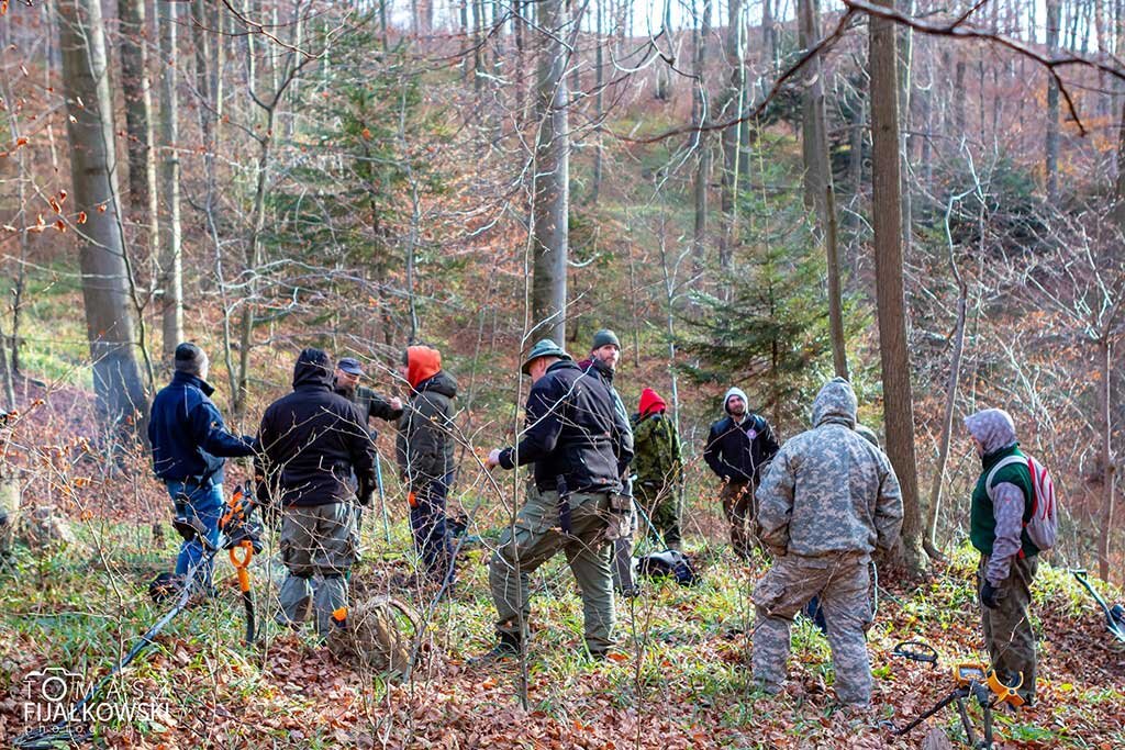 Przybliżę wam historię naszej wyprawy, a był to jeden z najbardziej spontanicznych wyjazdów jakie miałem. W czwartek 19.11 otrzymałem informację o badaniach na XIII wiecznym grodzisku. Szybka decyzja, montaż trzy osobowego składu i w niedzielę o godzinie 1.30 startujemy do Sanoka. Bieszczady już na samo przybycie przywitały nas pięknym wschodem słońca. O 9.00 zbiórka grupy i zaczynamy wspinaczkę na Białą Górę. Szybko wyszło na jaw, że my mazowieccy przybysze nie jesteśmy przyzwyczajeni do górzystego terenu. Na szczęście się udało. Tam archeolog doktor Piotr Kotowicz opowiedział nam historię związaną z grodem oraz przedstawił cel badań. Plan był prosty. Ustalić którędy został przeprowadzony najazd na grodzisko. Po tym został on doszczętnie zniszczony i już nigdy nie próbowano go odbudować. Dlatego istotne z naszego punktu widzenia były groty strzał i bełty z kuszy oraz kierunek ich ułożenia. Czyli przy poszukiwaniach trzeba było ostrożnie usunąć humus i jeśli obiekt znajdował się pod nim ostrożnie określić jego położenie. Ułożenie bełtów świadczyło o obronie osadników. Cel najprawdopodobniej udało nam się osiągnąć odnaleźliśmy sporą ilość bełtów i wstępnie potwierdziliśmy drogę najazdu. O 16.30 wyruszyliśmy w drogę powrotną bogatsi o cenne doświadczenie i zadowoleni z wyniku pracy jaki osiągnęliśmy. Dziękuję jeszcze raz z zaproszenie i możliwość udziału w tych badaniach.