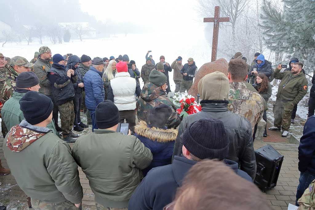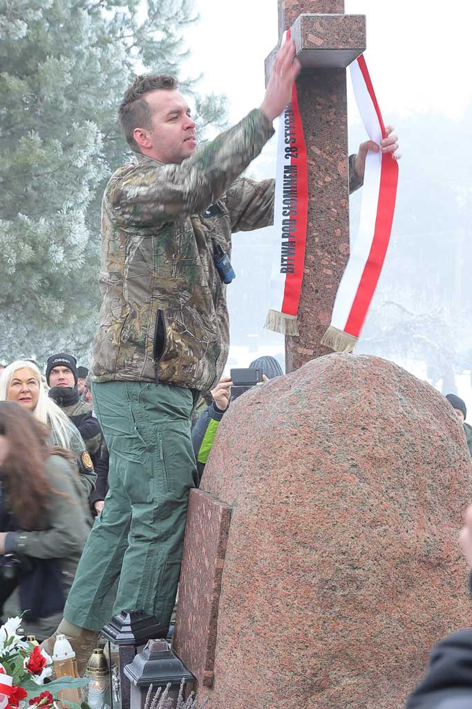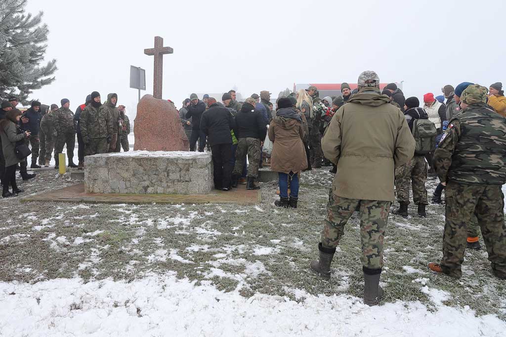 Po drodze na miejsce poszukiwań eskortowani w kolumnie samochodów przez Straż Pożarną, zatrzymaliśmy się przy pomniku poświęconym bohaterom Powstania Styczniowego, który powstał z inicjatywy Pana Jana Bogdana. Pod pomnikiem złożono wieńce i zapalono znicze.